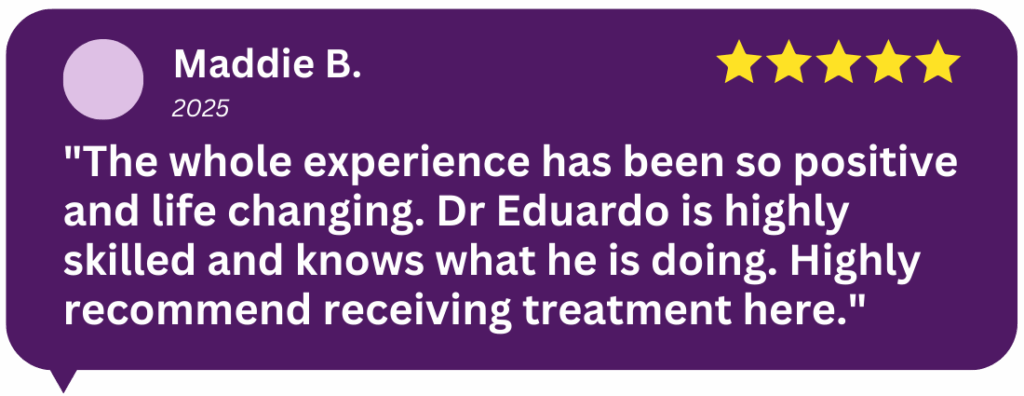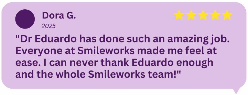 People whose teeth stick out often feel self-conscious about their smile. Many avoid smiling in photos or feel uncomfortable relaxing their lips. Patients frequently describe braces treatment for an overjet as life-changing because these concerns often disappear once the teeth are brought into balance. Dr Eduardo says, “many patients say their teeth make them feel awkward. So they come in for an assessment and we help them.”